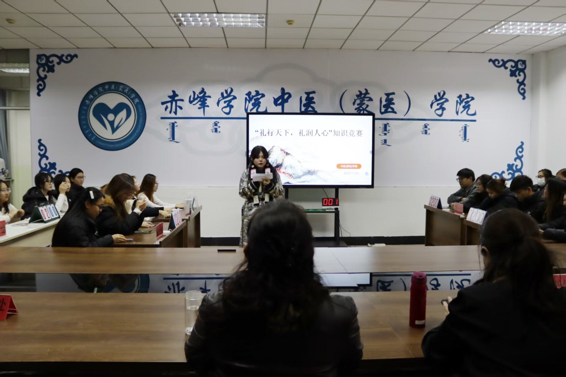 11 月 26 日晚,中医(蒙医)学院 “礼行天下・仪润人心” 礼仪知识竞赛如期举行,共8 支代表队同台竞技。