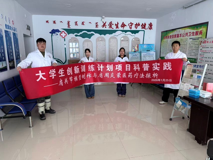 近日,我院蒙医专业大学生创新团队项目负责人2022级蒙医本科班张文静,团队成员2022级蒙医本科班凌巧云、2023级蒙医本科班苏日塔勒、郭闪闪、爱日罕,依托自治区级大创项目在家乡开展健康科普活动,为乡亲们送上传统医学健康福利。