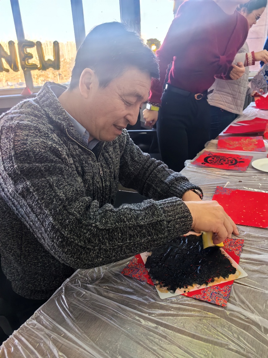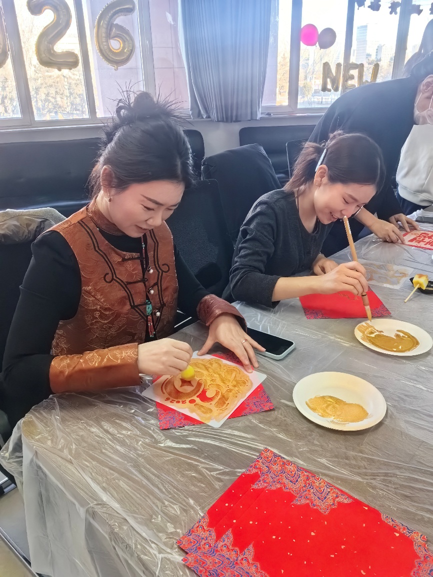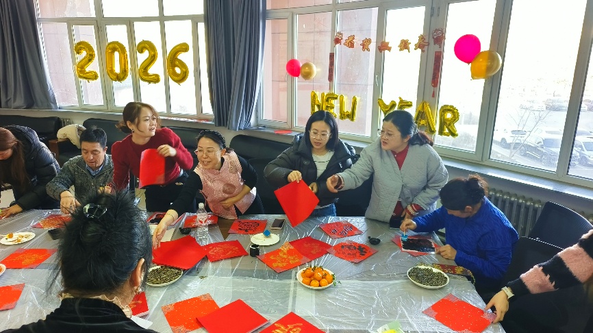 在2026年新年来临之际,为丰富教职工精神文化生活,弘扬优秀传统文化,营造喜庆浓厚的节日氛围,12月30日上午,我院举办“欢喜拓福印启新程”主题迎新年活动。